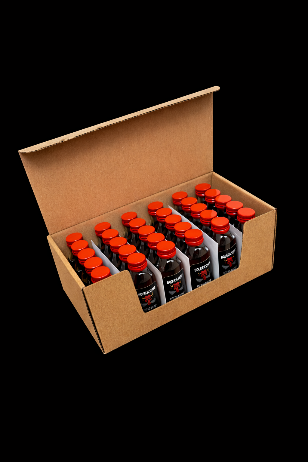 Voor wie écht wil uitpakken. De BoerenShot Mega Doos bevat maar liefst 240 flesjes en is dé ideale keuze voor festivals, verenigingen, horeca, evenementen of grote feesten. Eén doos, maximaal plezier.
